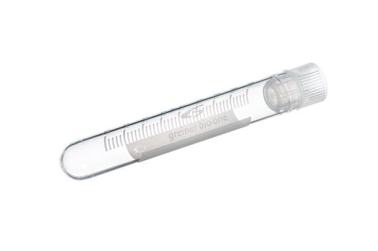 Criotubo 5 ml Tampa rosca interna natural - Greiner - PP - Fundo redondo sem base - área de escrita - estéril.